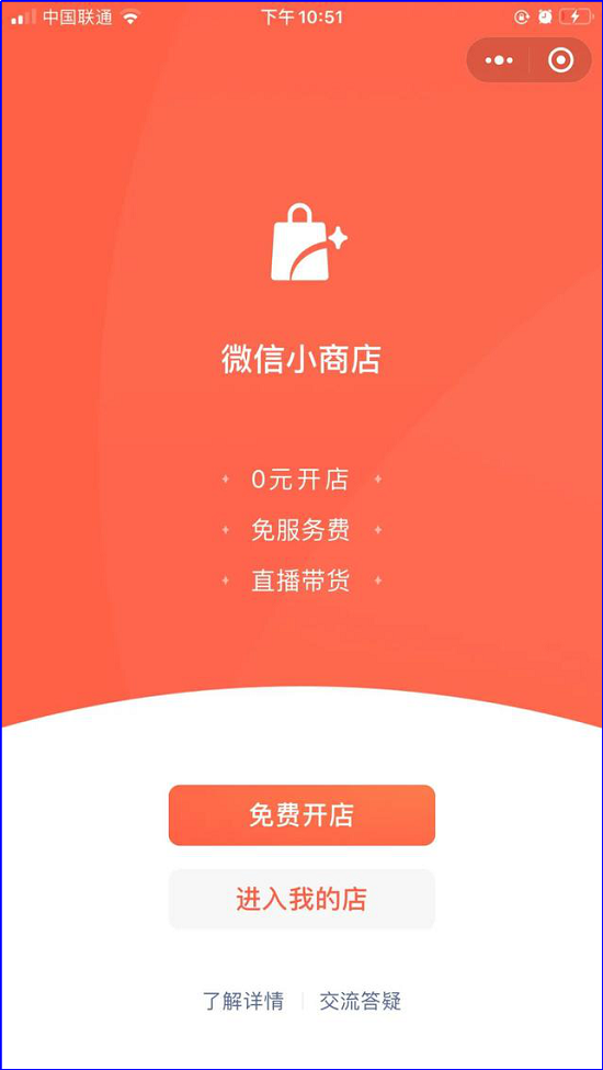 按照官方的說法,微信小商店是小程序團隊全新打造的一個快速建店工具,無需開發(fā)即可一鍵開通一個賣貨小程序,可免服務(wù)費,店主還能直播帶貨。