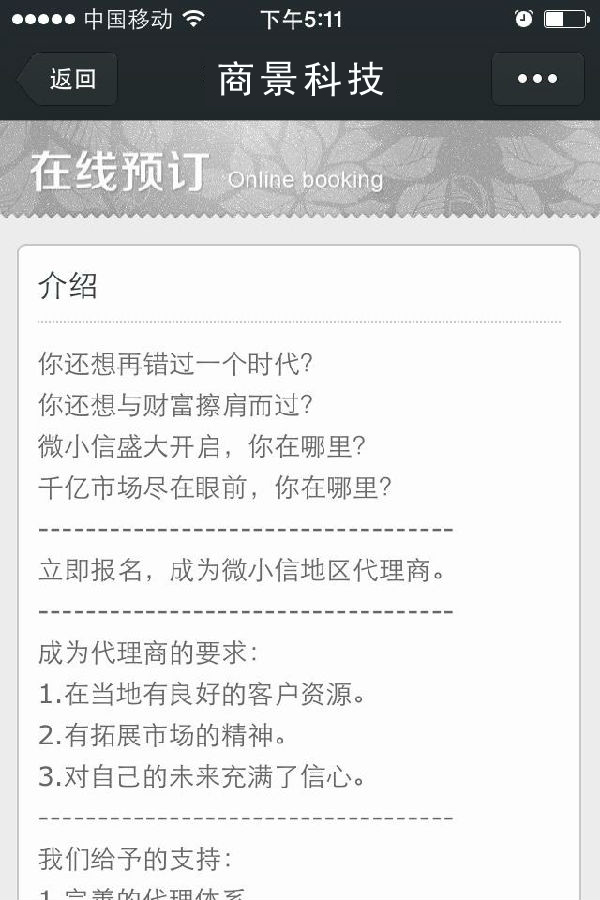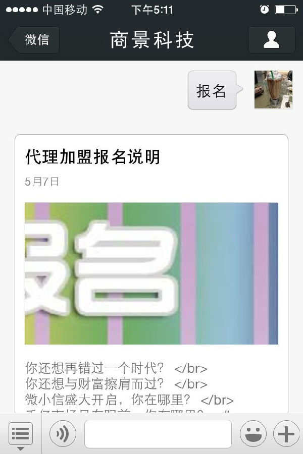 各種報(bào)名預(yù)約 一鍵即可 收集用戶資料 報(bào)名功能,輸入【報(bào)名】進(jìn)行報(bào)名操作(此功能需要先到后臺(tái)創(chuàng)建活動(dòng)才可以使用)