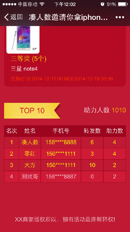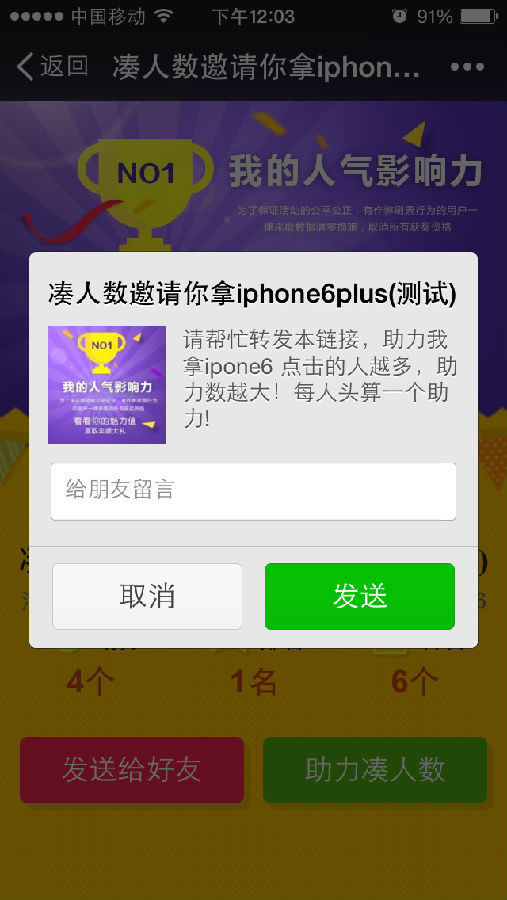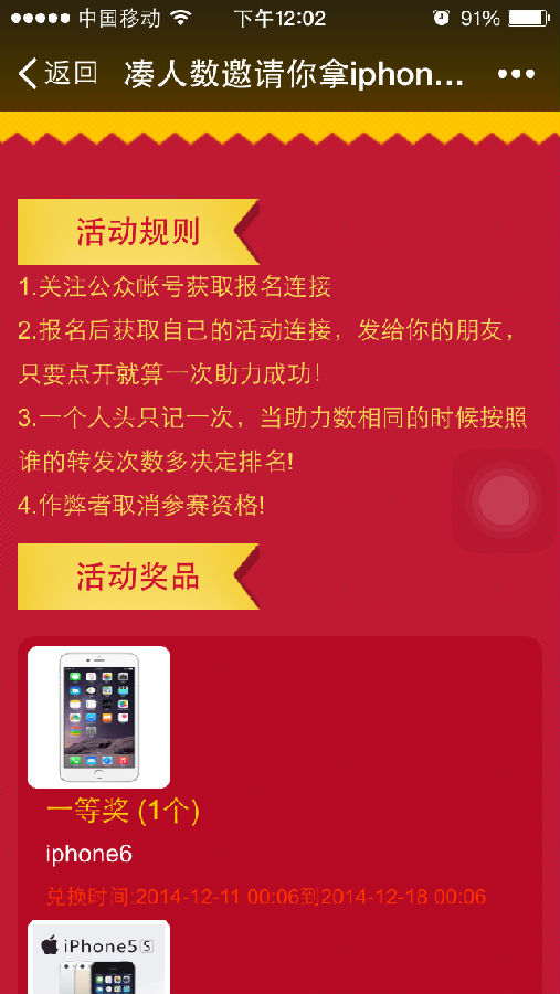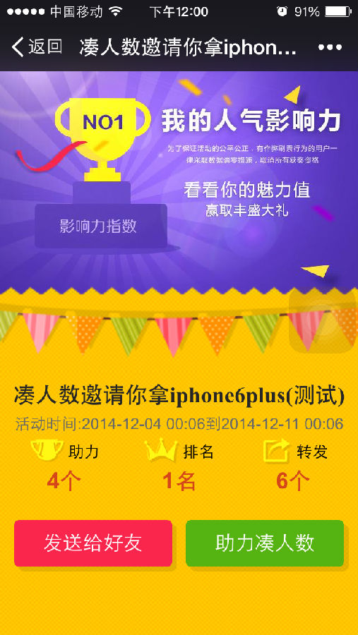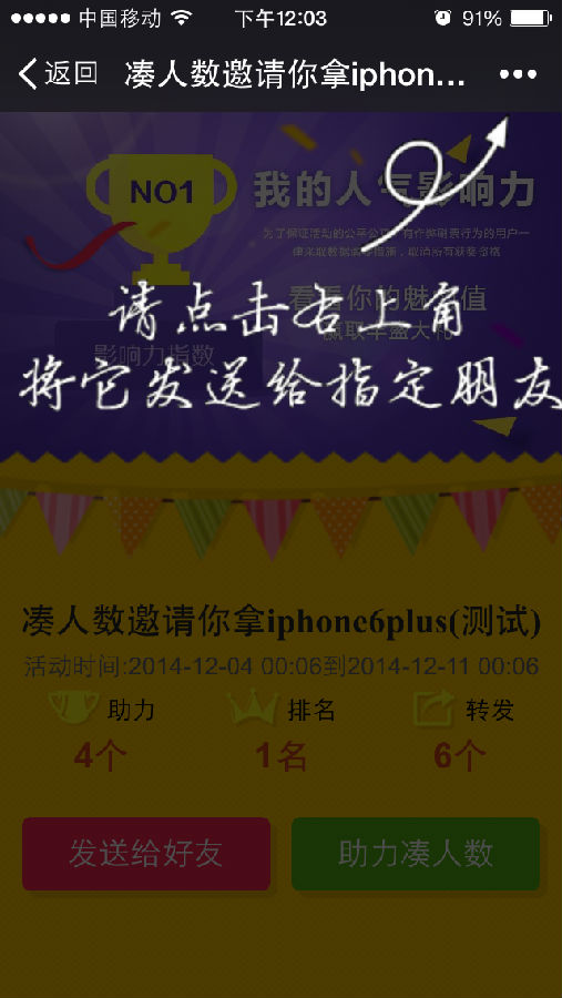 功能亮點(diǎn):可檢測(cè)轉(zhuǎn)發(fā)數(shù),助力數(shù)(指的是分享的點(diǎn)擊數(shù)),根據(jù)助力數(shù)和轉(zhuǎn)發(fā)數(shù)來(lái)排名次,商家可根據(jù)此來(lái)自定義活動(dòng)的內(nèi)容,比如:助力搶牛排,拼轉(zhuǎn)發(fā)得iPhone之類的活動(dòng)。
